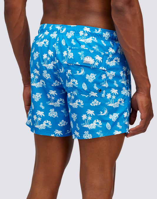 SHORT SWIMSUIT WITH ELASTIC WAIST AND DREAMY HAWAII PRINT