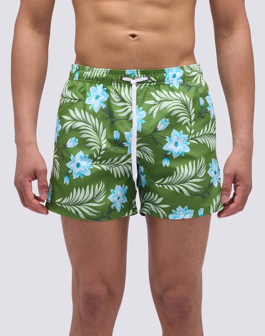 RECYCLED POLY SHORT SWIMSHORTS WITH ELASTIC WAIST SUNICE PRINT