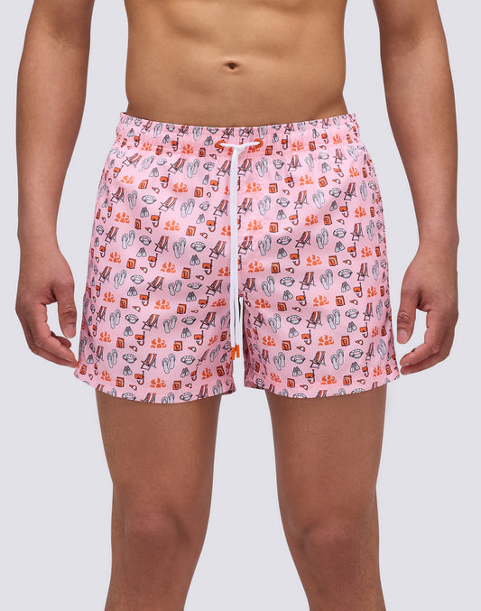 REPREVE® ELASTICATED WAIST SHORT SWIMSHORTS WITH BEACH SET PRINT