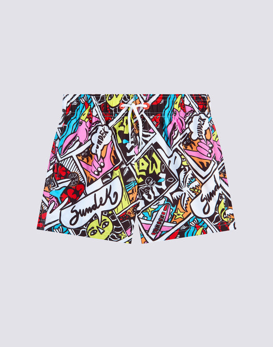 SHORT SWIMSUIT WITH ELASTIC WAIST AND RAINBOW PRINT IN RECYCLED POLY