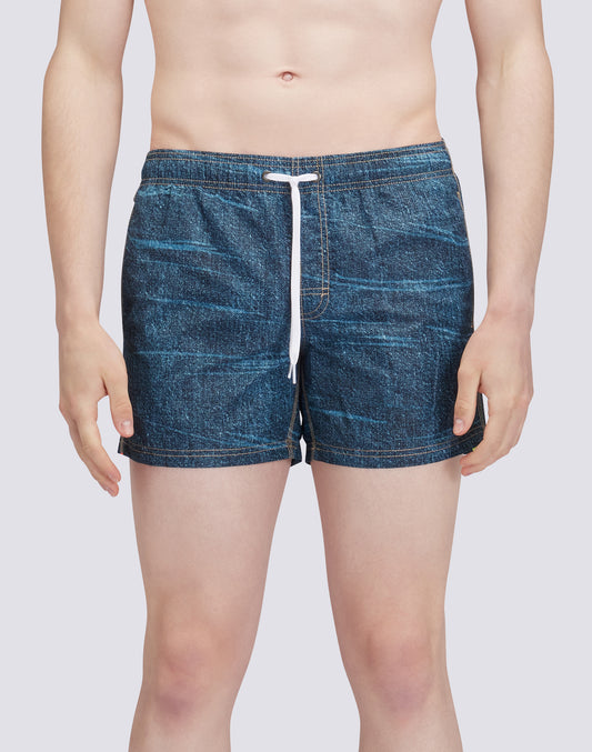 DENIM PRINT SHORT SWIMSHORTS ELASTIC WAIST ICONIC TAFFETA GOLDENWAVE