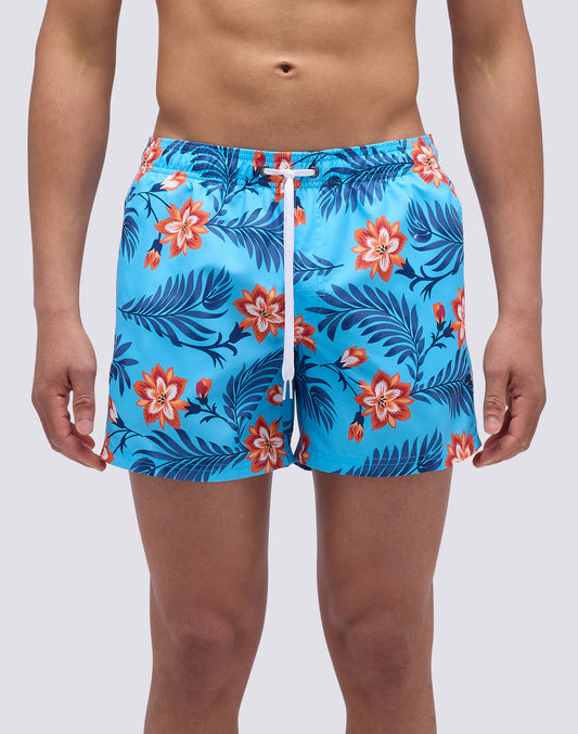 SHORT SWIMSUIT WITH ELASTIC WAIST AND DREAMY HAWAII PRINT