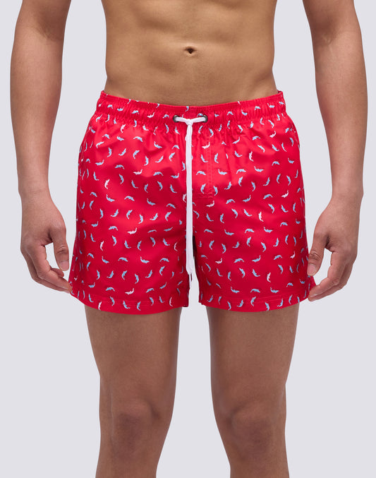 SHORT SWIMSUIT WITH ELASTIC WAIST IN RECYCLED POLYESTER WITH DOLPHIN PRINT