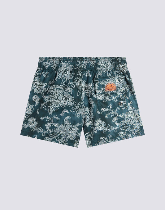 SHORT SWIMSHORTS WITH ELASTICATED WAIST AND HIBI PAISLEY PRINT IN RECYCLED POLYESTER
