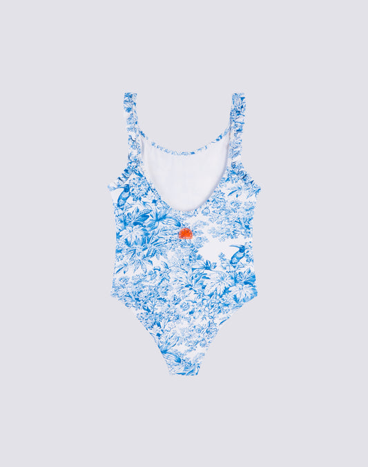 ONE-PIECE SWIMSUIT WITH TOILE DE JOUY RUFFLES