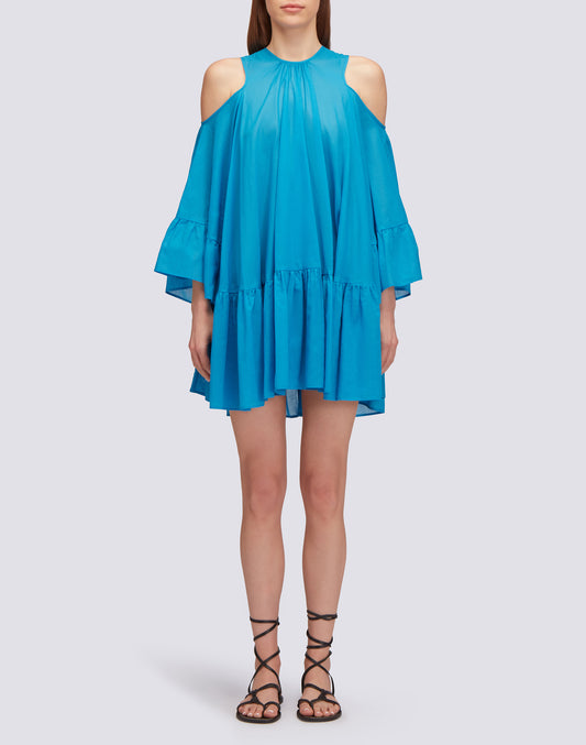 SHORT DRESS WITH OFF-THE-SHOULDERS IN COTTON VOILE