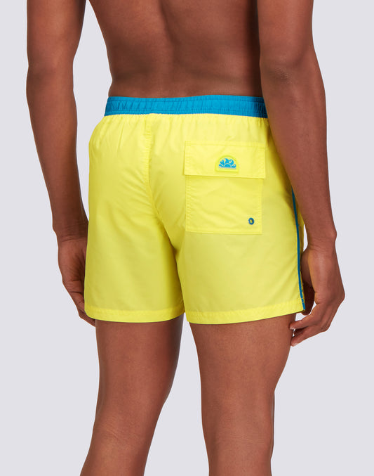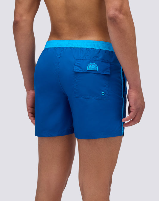 ICONIC TAFFETA ELASTICATED WAIST SHORT SWIMSHORTS WITH CONTRASTING PIPING
