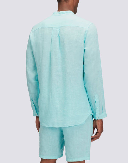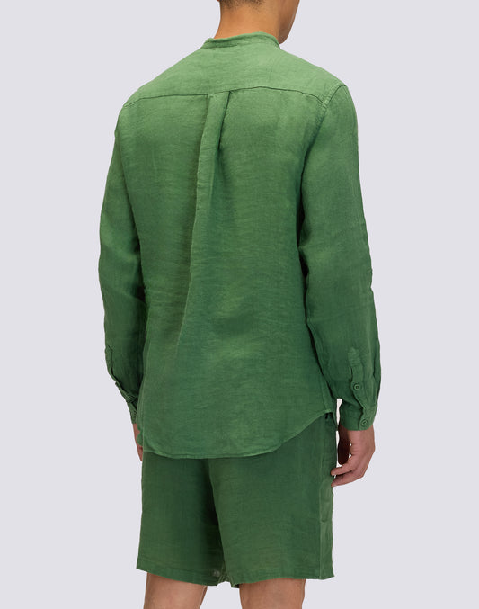 GARMENT DYED LINEN SHIRT WITH MANDARIN COLLAR