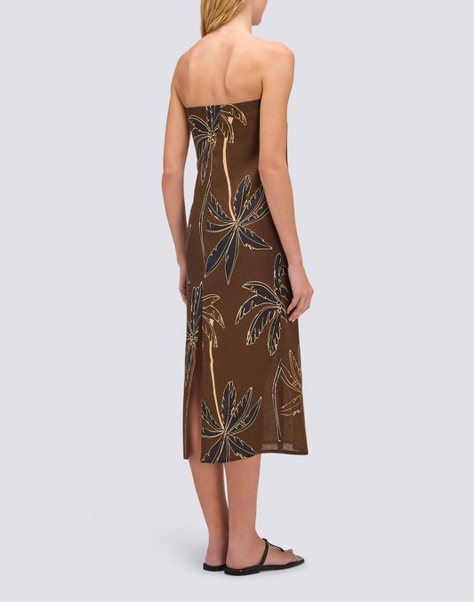 WOMEN'S OFF-THE-SHOULDER DRESS WITH GOLDEN PALM PRINT