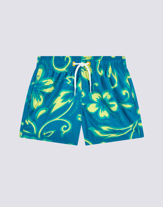 RECYCLED POLY SHORT SWIMSHORTS WITH ELASTIC WAIST SUNICE PRINT