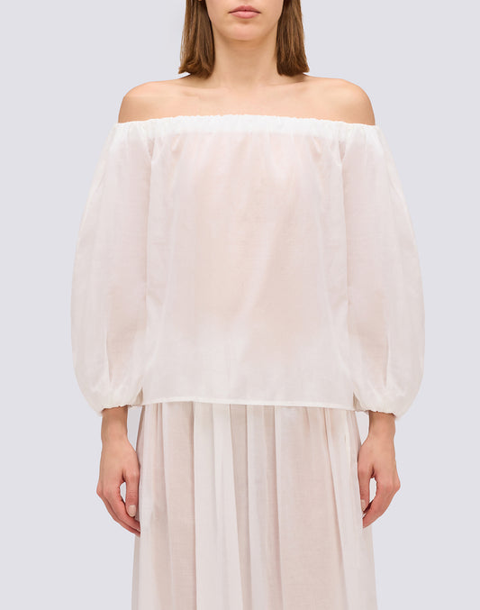 COTTON VOILE BLOUSE WITH BOAT NECKLINE