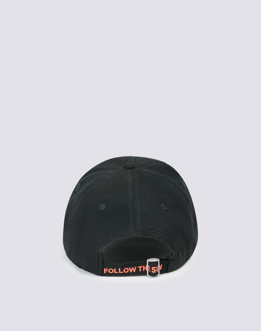 Back closure with adjustable strap and FOLLOW THE SUN writing