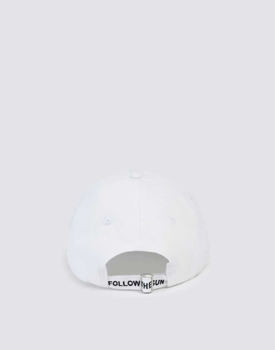 Back closure with adjustable strap and FOLLOW THE SUN writing