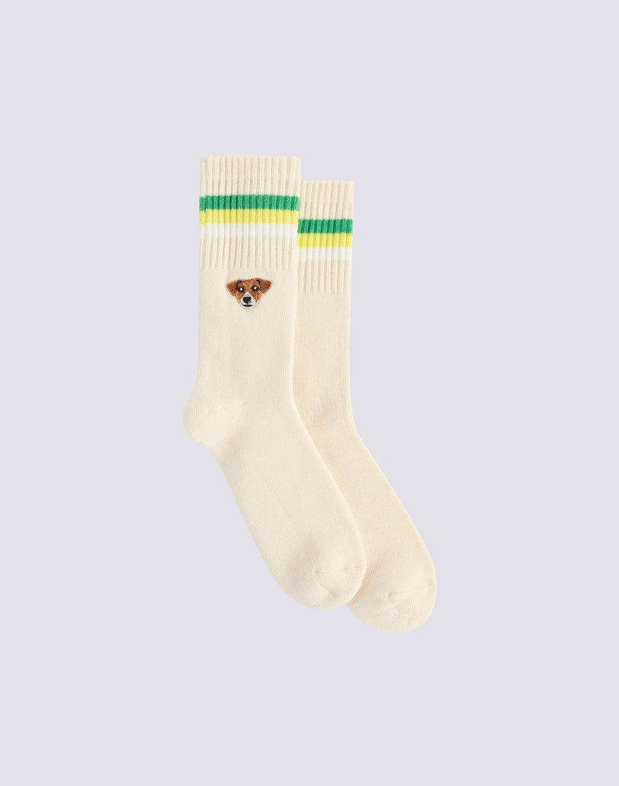 Cotton sock from the Sundek & Pelo Foundation capsule, decorated with the Jack Russell patch. This accessory combines comfort and style, perfect for dog lovers who want to express their passion even in the details.