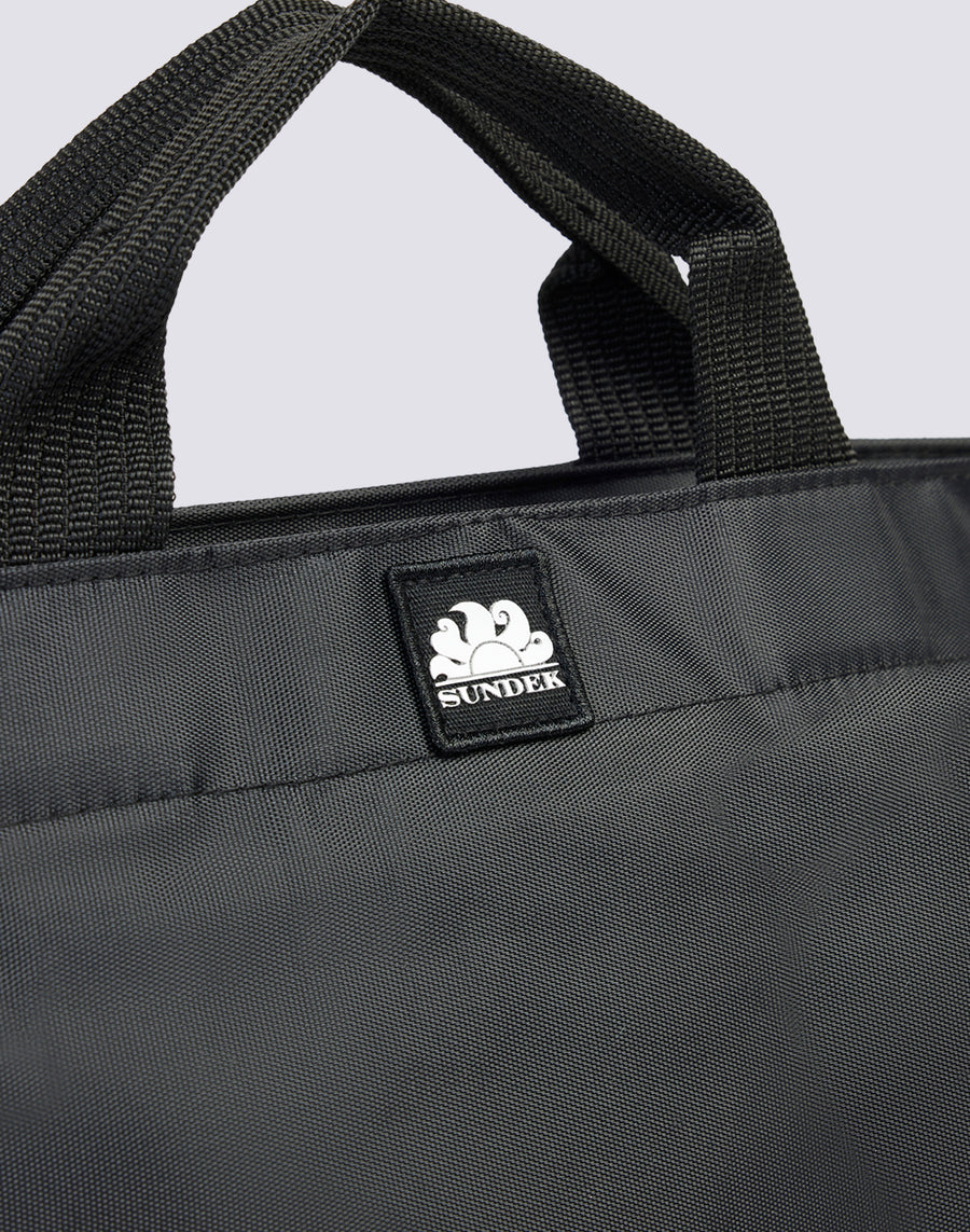 Mini shopping bag characterized by double handle, central closure with zip and internal pocket, also resealable with zip. Small, practical and functional to always have all the essentials with you.