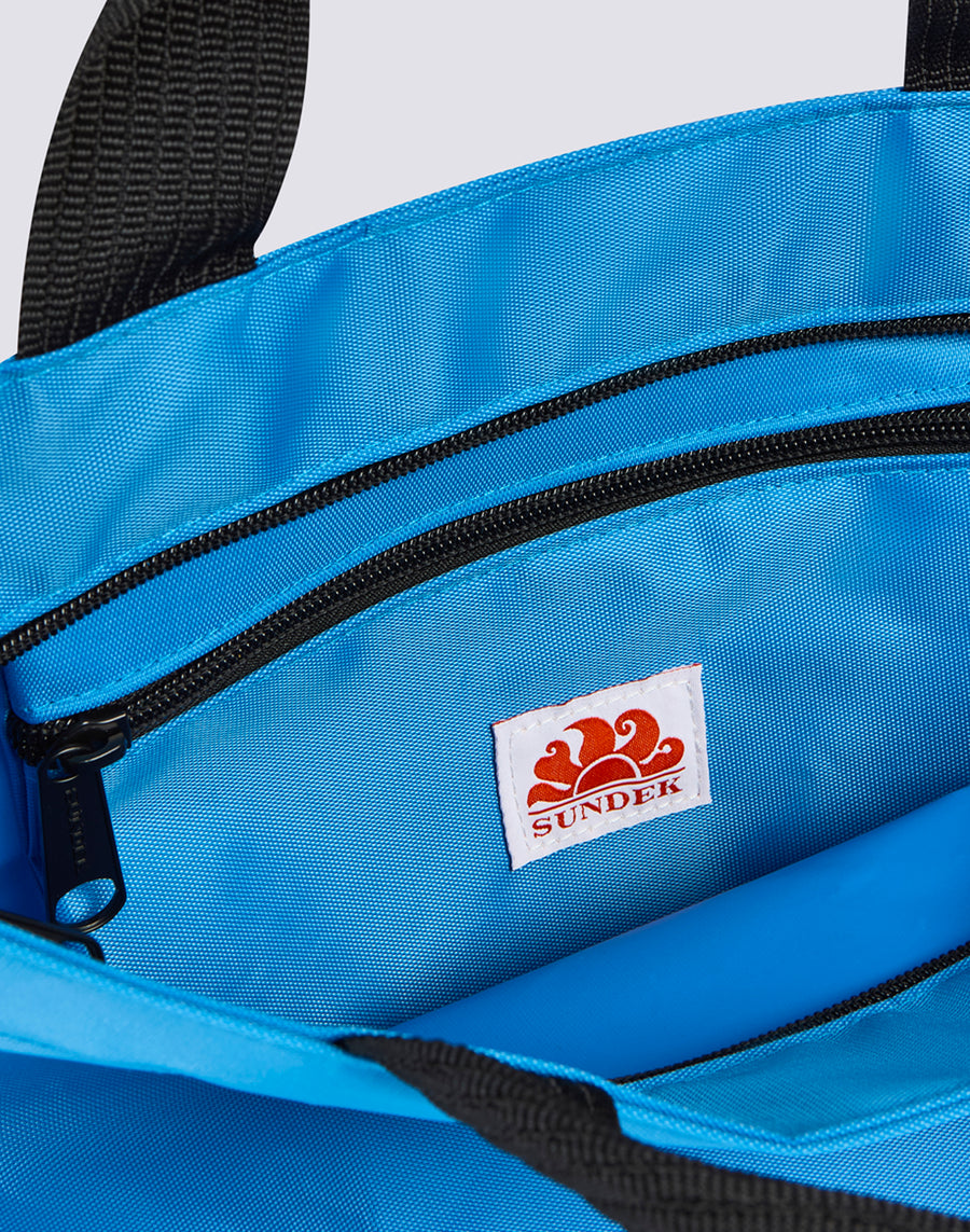 Mini shopping bag characterized by double handle, central closure with zip and internal pocket, also resealable with zip. Small, practical and functional to always have all the essentials with you.