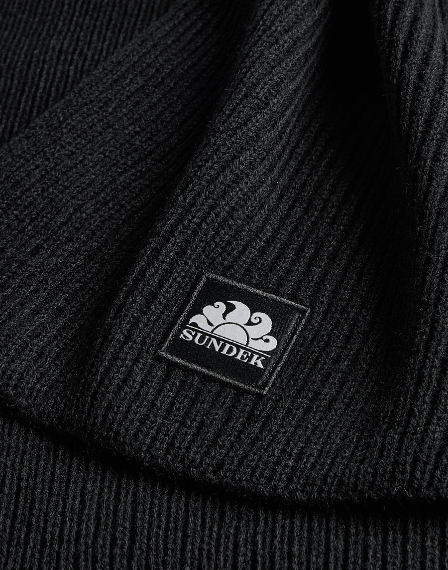 Basic solid-coloured ribbed scarf with patch.
