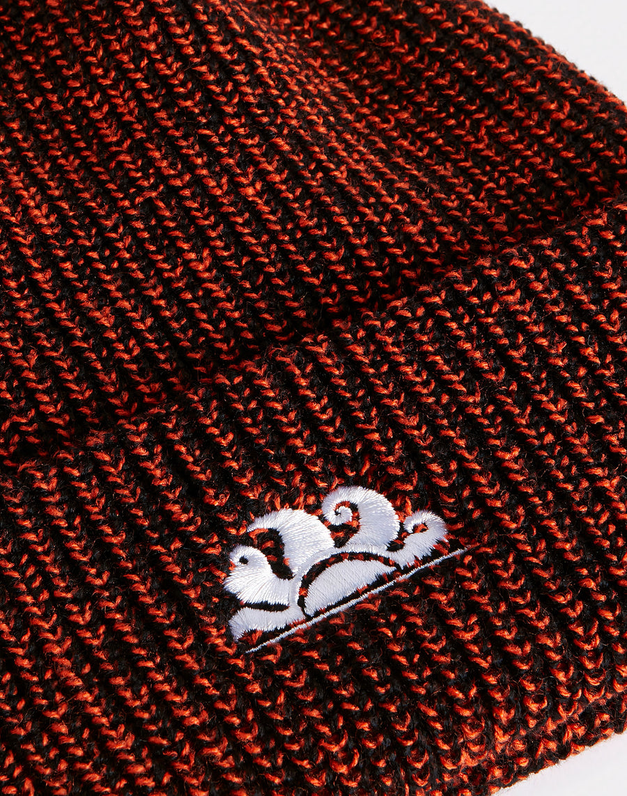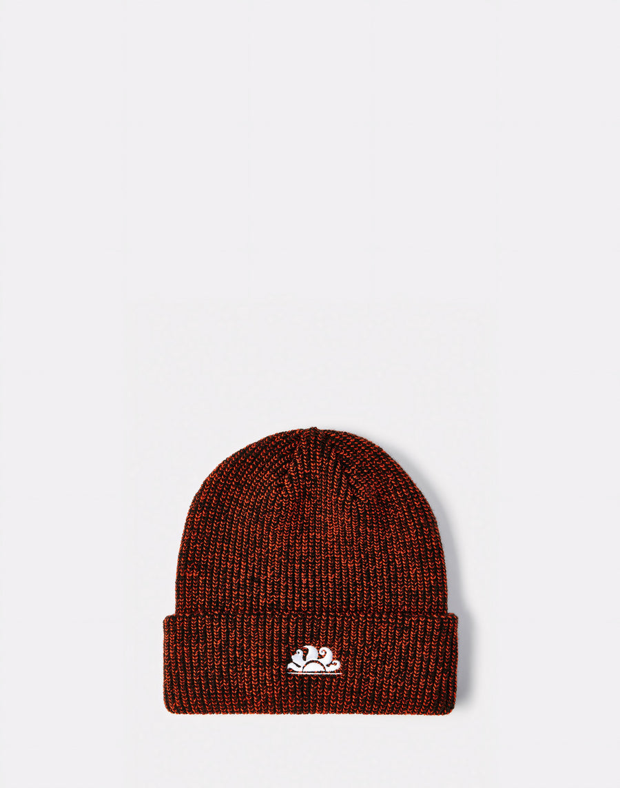 Knitted beanie with muliné effect, with contrasting embroidered logo on the front. The must-have accessory for your winter outfits.