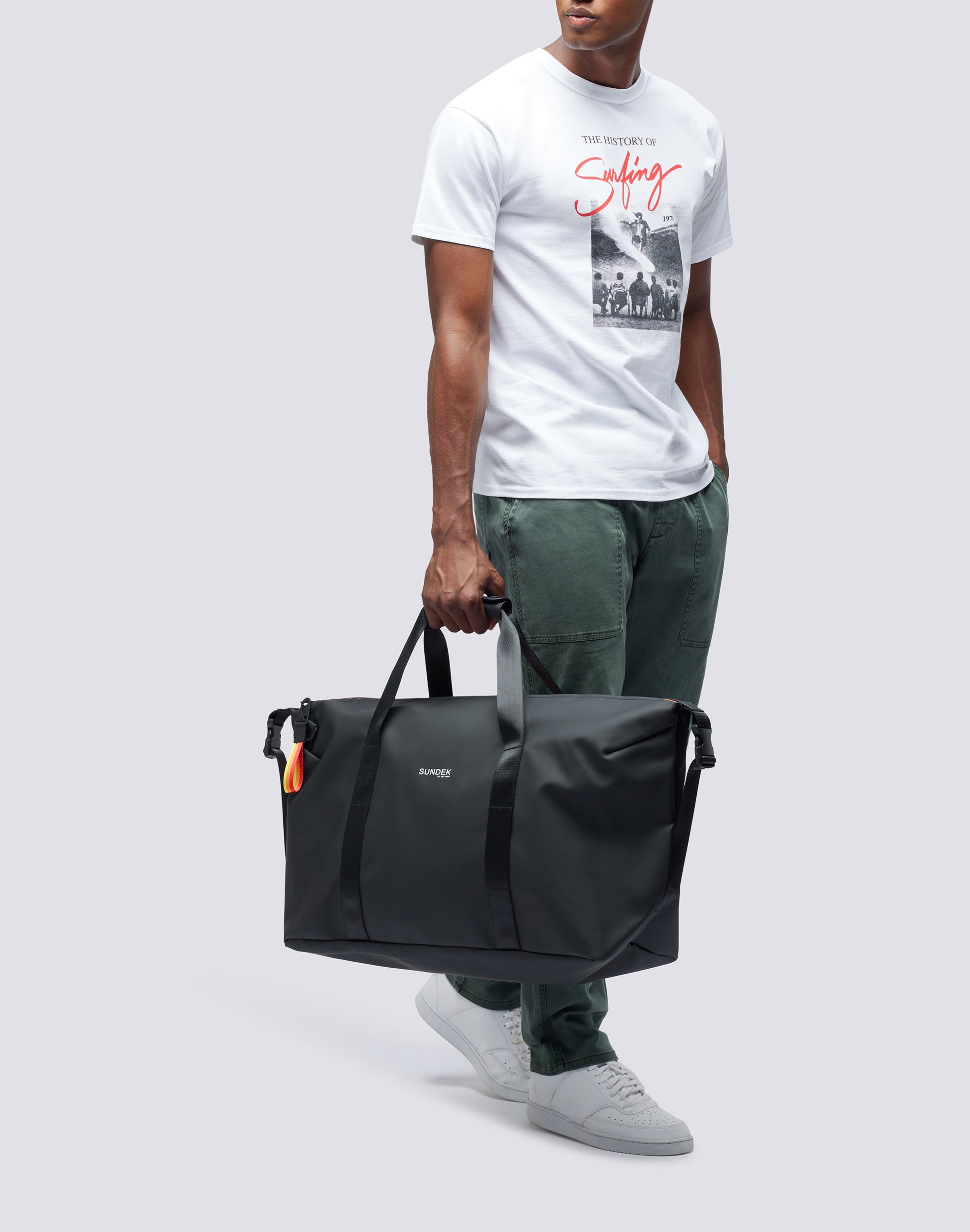 Weekend bag with welded zip and detachable and adjustable handles. Roomy, ideal for small getaways out of town or for the gym.