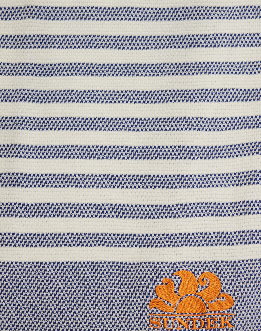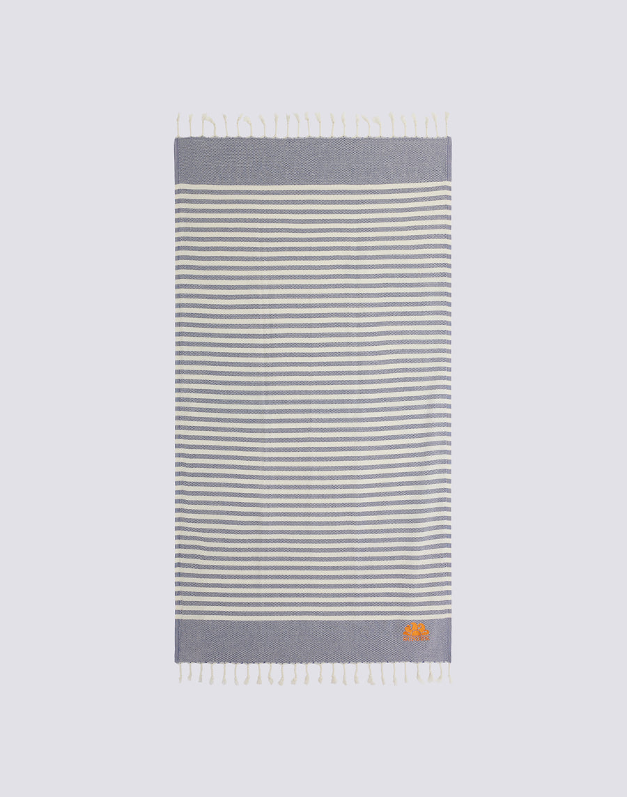 Honeycomb jacquard terry cotton beach towel, striped pattern and embroidered logo. Dimensions: 100x200 - Weight 400 gr.