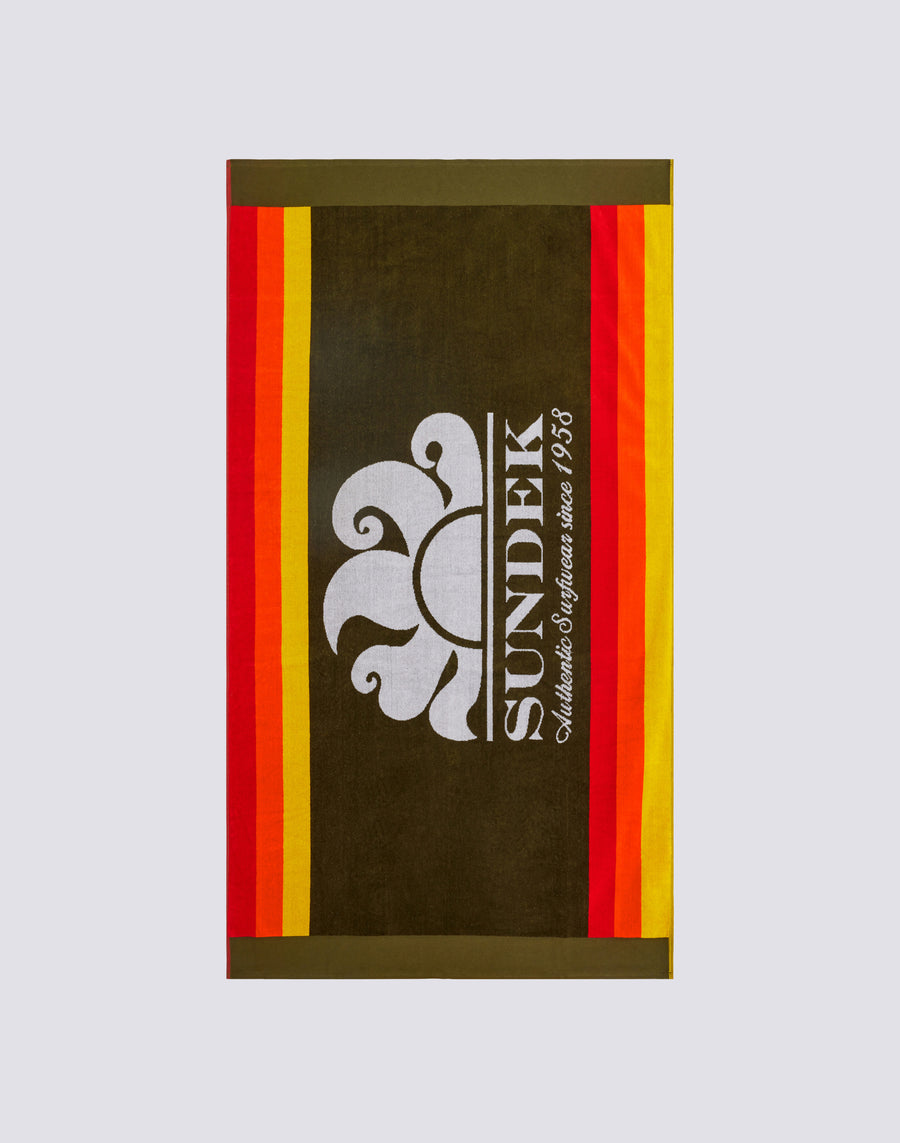 Jacquard terry beach towel with rainbow details and maxi logo. Dimensions: 100X180, 440 gr.