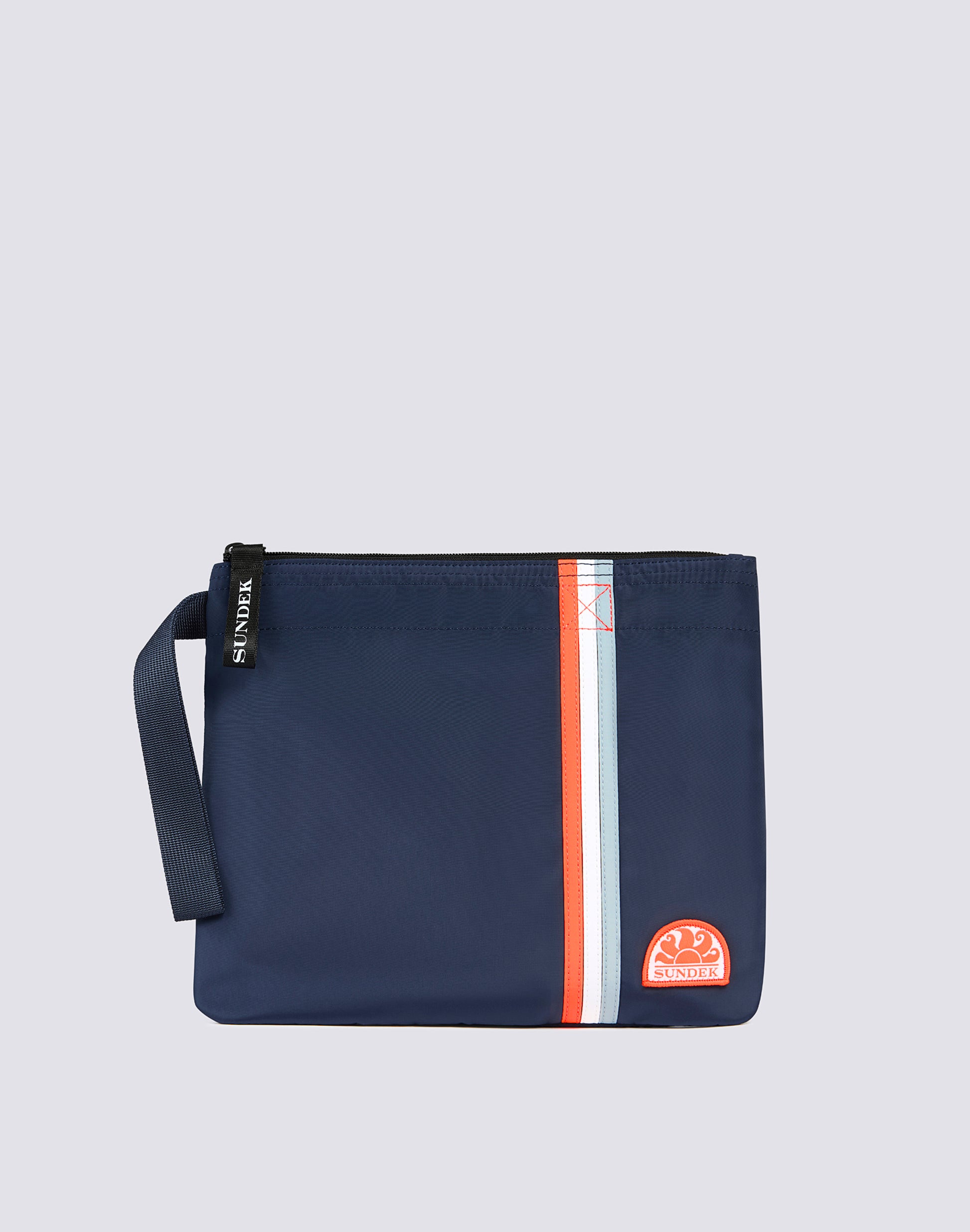 Lightweight, lined beach clutch bag with iconic tricolour ribbon detail to hold and protect the essentials you prefer to keep close at hand. Perfect to carry in your handbag or on its own thanks to the practical loop loop.