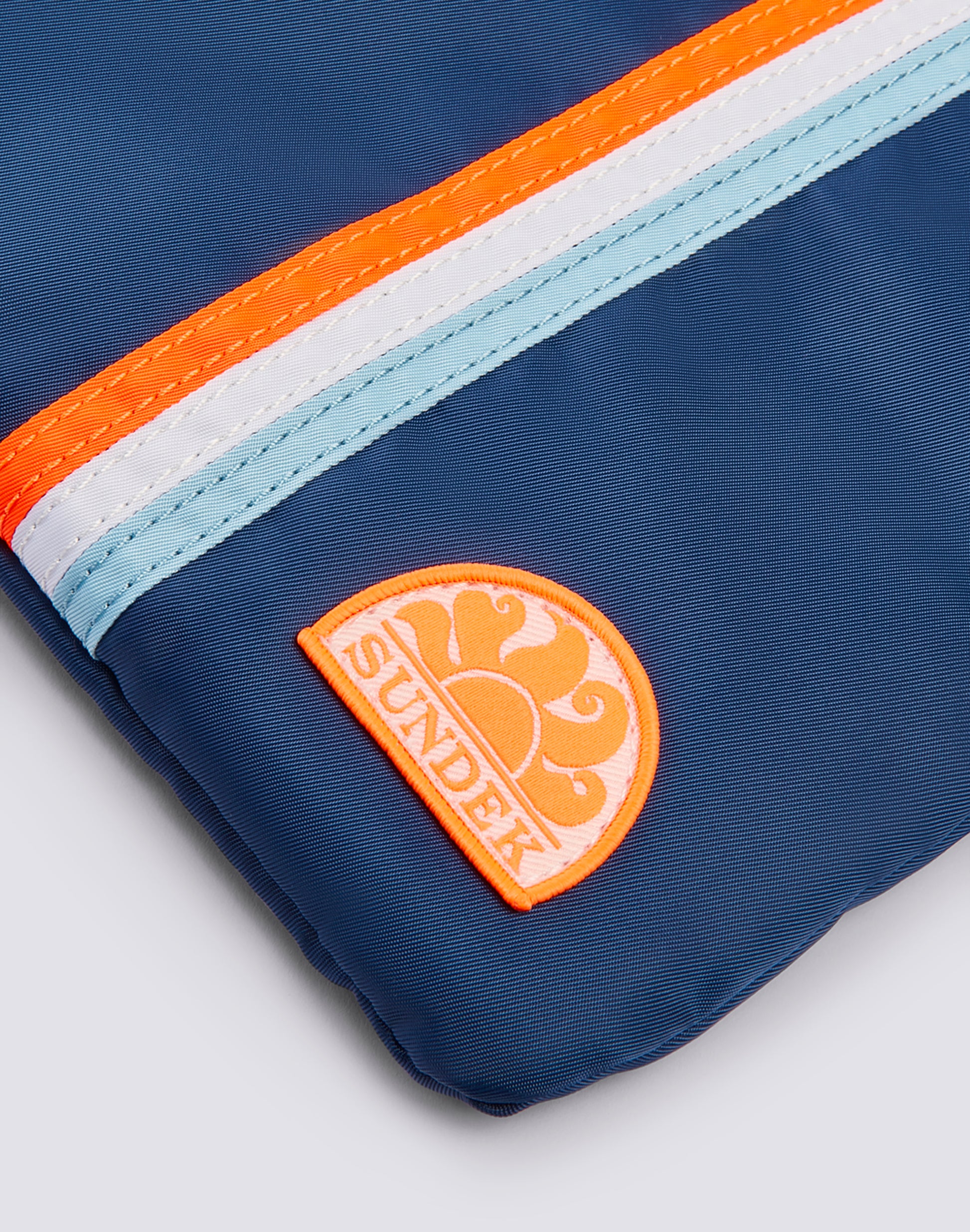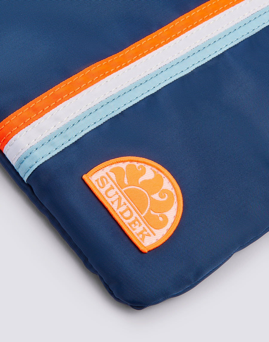 Lightweight lined beach clutch bag finished with the iconic tricolour ribbons, perfect for holding and protecting all the essentials you prefer to keep close at hand. You can carry it inside another bag or on its own thanks to the practical wrist strap.