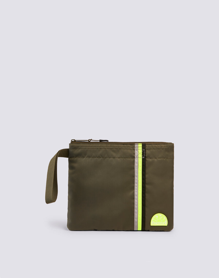 Lightweight lined beach clutch bag finished with the iconic tricolour ribbons, perfect for holding and protecting all the essentials you prefer to keep close at hand. You can carry it inside another bag or on its own thanks to the practical wrist strap.