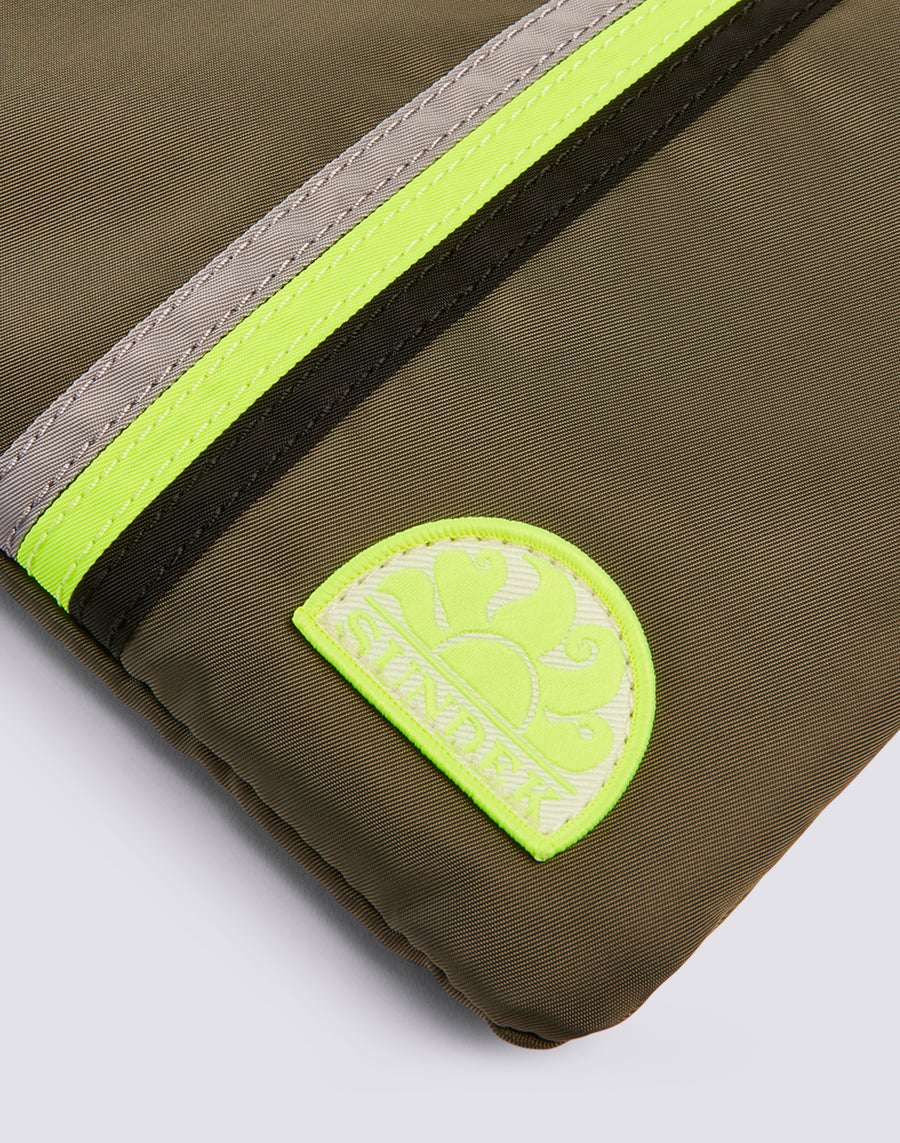 100% POLYAMIDE Made in our historic soft, light and resistant nylon-taffeta fabric.