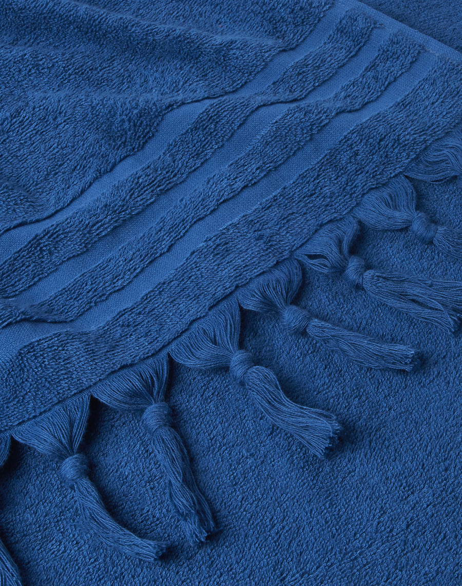 A touch of softness for your relaxation and your holiday activities with this soft terry beach towel with maxi logo and fringes. Length: 100x170cm. Weight: 330 g.