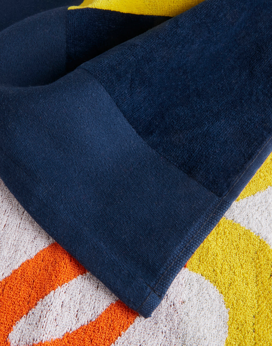 Light up your days on the beach with color and take this jacquard beach towel with you. With lively and fresh tones, it perfectly embodies the Sundek spirit. Let yourself be enveloped by the rainbow. Dimensions: 100x180 - 440 g.