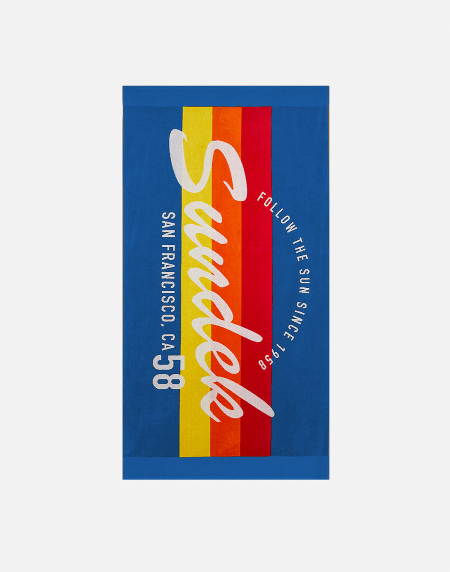 Light up your days on the beach with color and take this jacquard beach towel with you. With lively and fresh tones, it perfectly embodies the Sundek spirit. Let yourself be enveloped by the rainbow. Dimensions: 100x180 - 440 g.