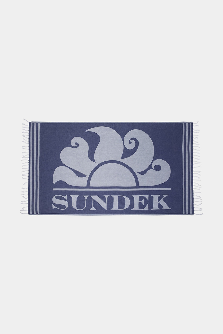 Jacquard fouta beach towel with contrasting maxi logo with vertical stripes and bottoms with woven fringes. Length: 100x170 cm. Weight: 360 gr.