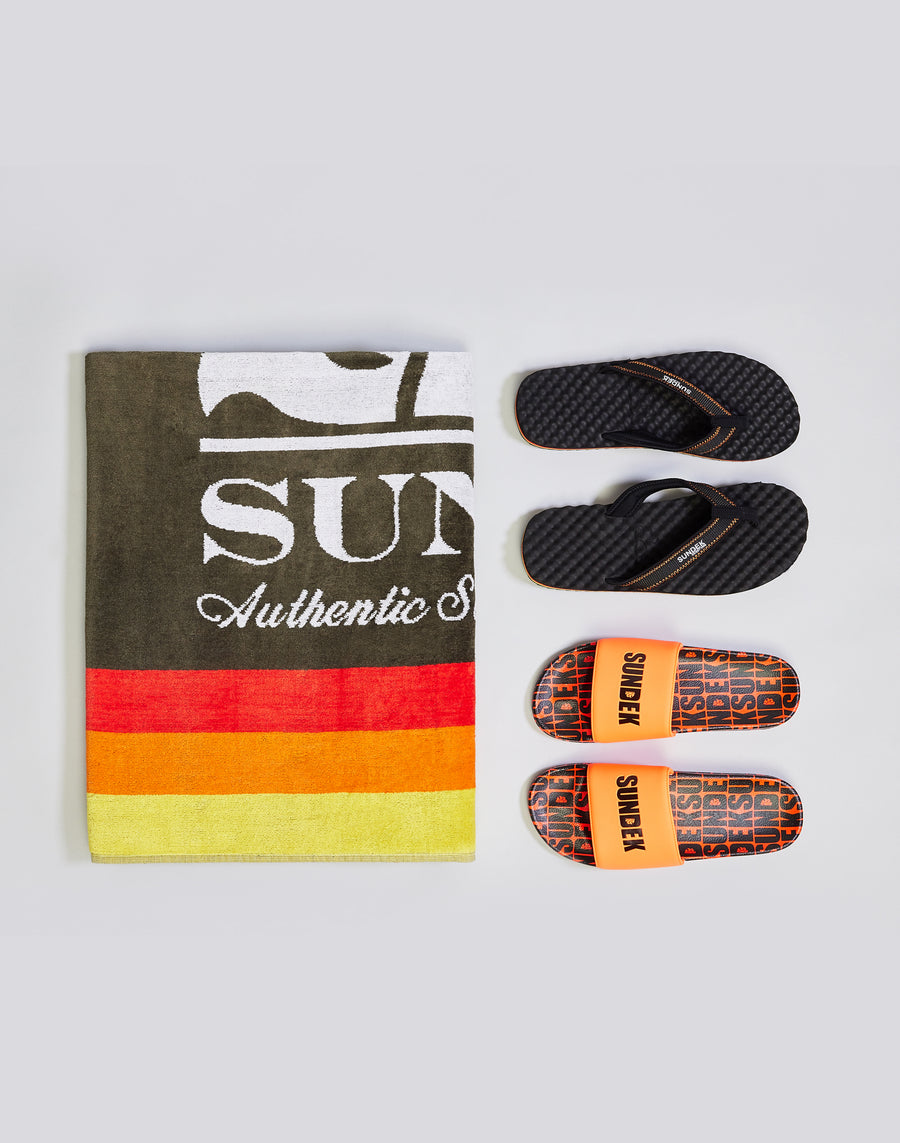 Comfort for your feet with these rubber flip-flops with Heritage rainbow print on the perimeters. Sole height 2.5 cm.