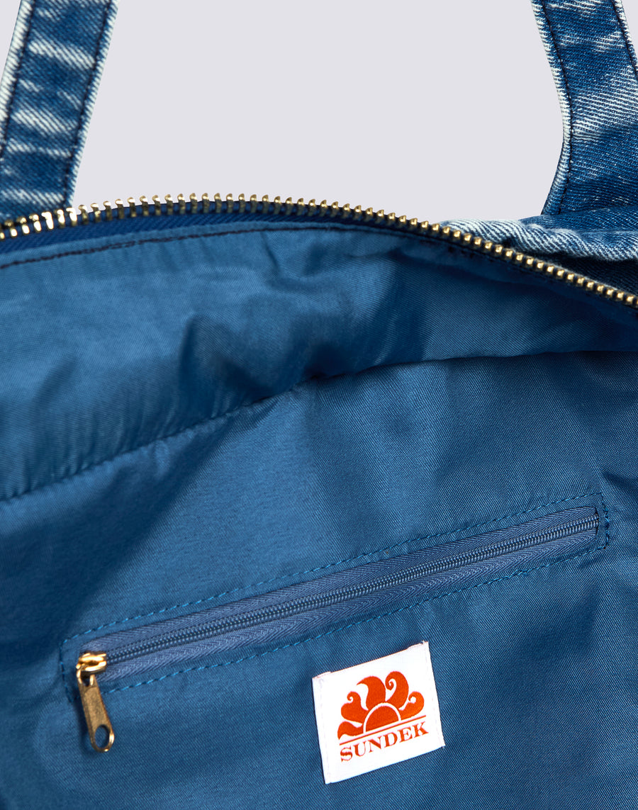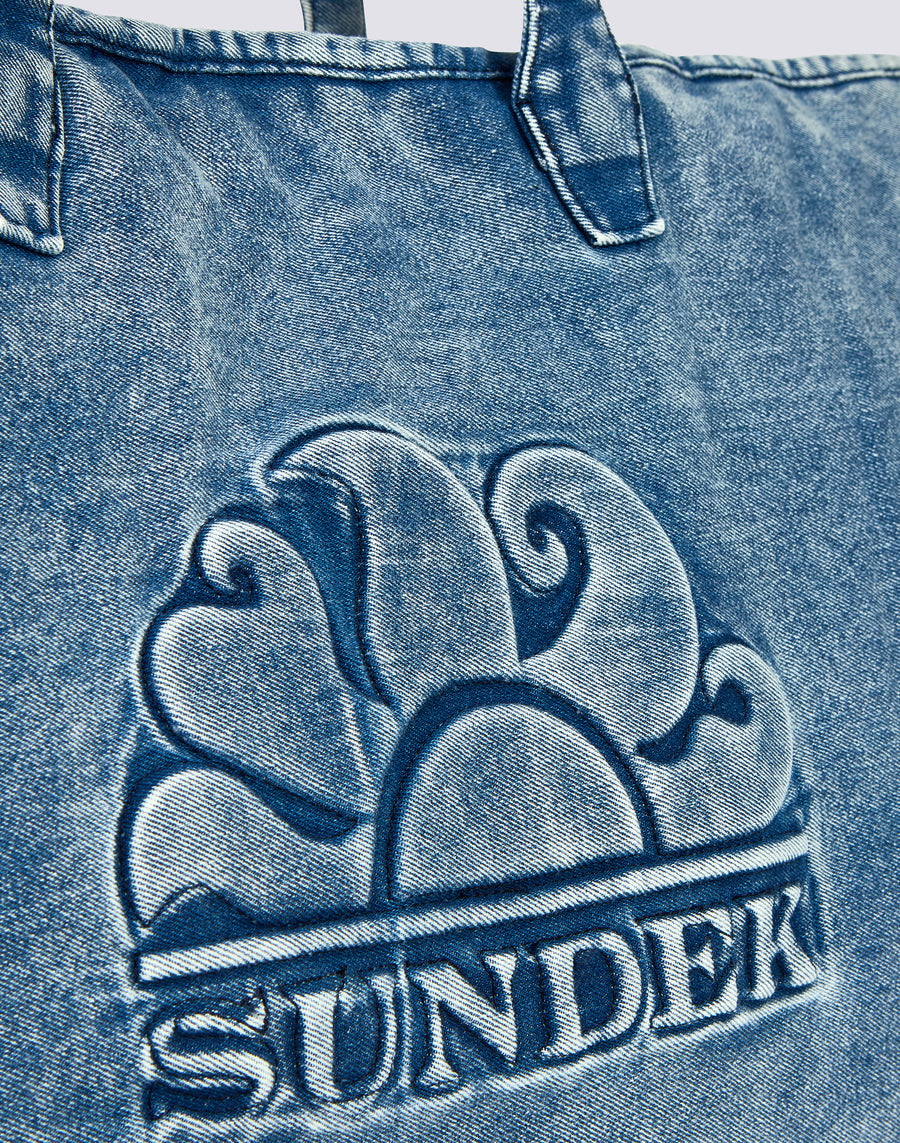 Large garment-dyed beach bag with Sundek logo engraved on the front. Spacious, roomy, available in 3 colours.