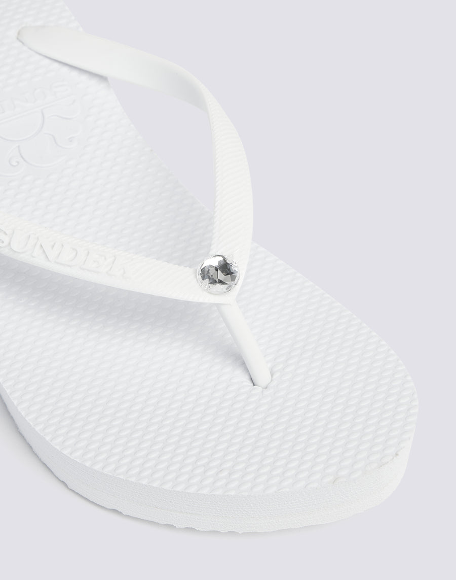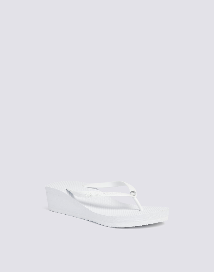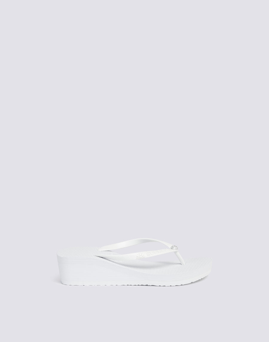 Toluca flip flops with wedge. Elegant and perfect to give momentum thanks to the 4 cm wedge. Sparkling and glamorous with the swarosky applied on the upper rubberized part.