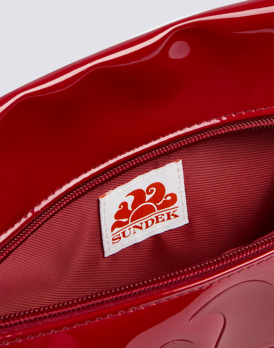 Waterproof beach clutch bag with carabiner and finger loop, to take with you wherever you want. A versatile clutch bag that can be used on its own with the hand strap or attached to bags and backpacks thanks to the practical carabiner. The shiny effect and front stitching give the clutch bag an essential touch of character. It is also waterproof to protect your most important items. Dimensions: 22 x 27 cm