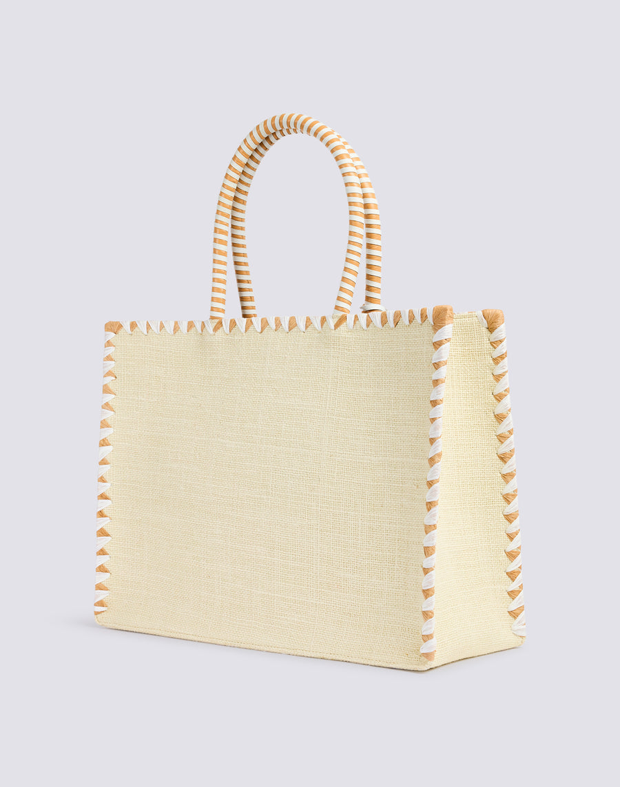 CANVAS 100% COTTON NATURAL RAFFIA LAMBSKIN LEATHER 100% GLASS BEADS 100% COTTON LINING