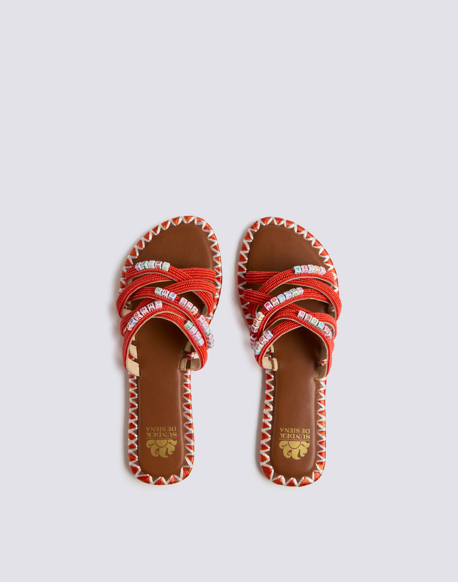 EXTERNAL SOLE 100% BUFFALO LEATHER INSIDE SOLE 100% SHEEP LEATHER 100% GLASS BEADS PLASTIC CUBES 100% NATURAL RAFFIA
