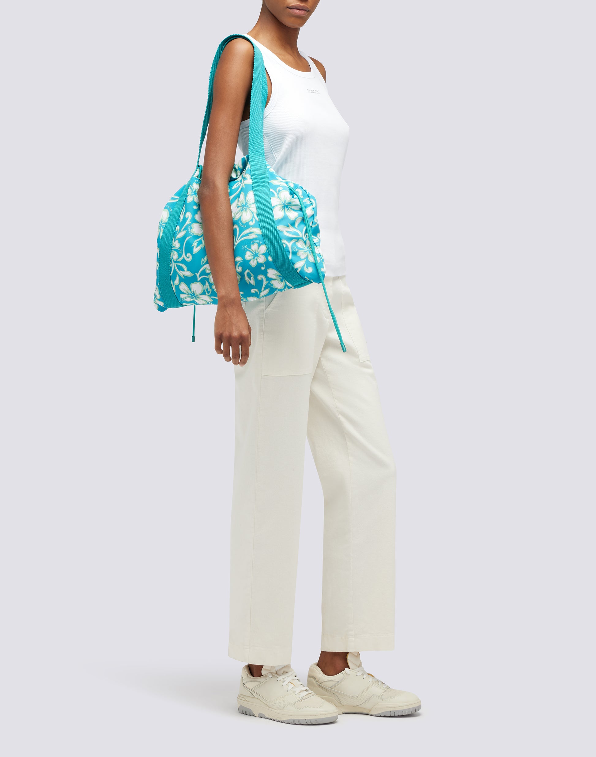 AVA - NYLON BAG WITH HANDLES AND STRINGS HIBISCUS PRINT SK23