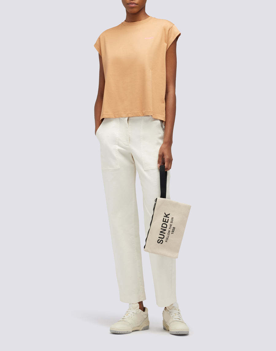 Clutch bag in stone washed cotton canvas perfect in its practicality to carry everything you need for your daily activities.