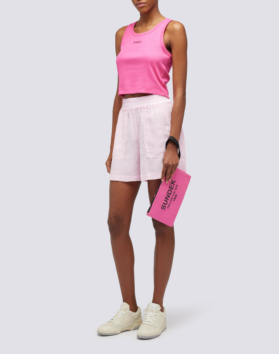 Clutch in stone washed cotton canvas perfect in its practicality for carrying with you everything you need for your activities.