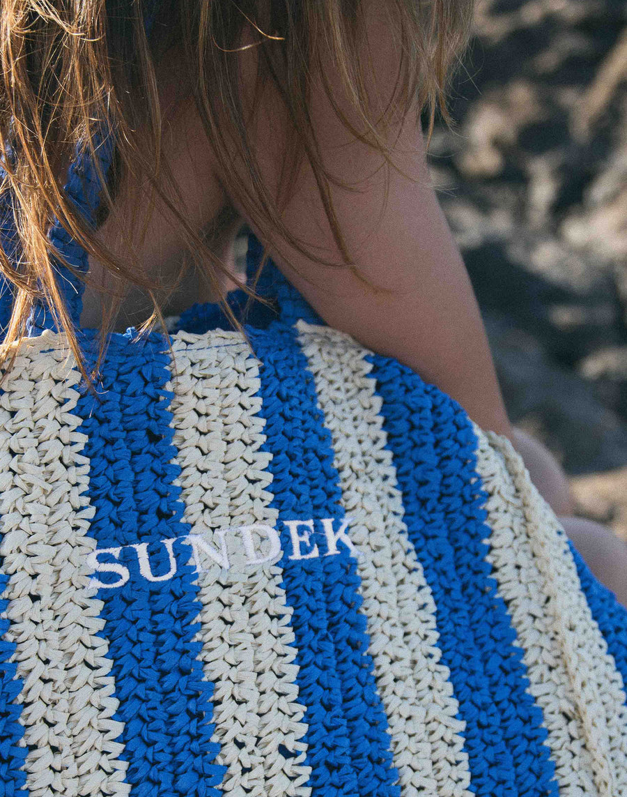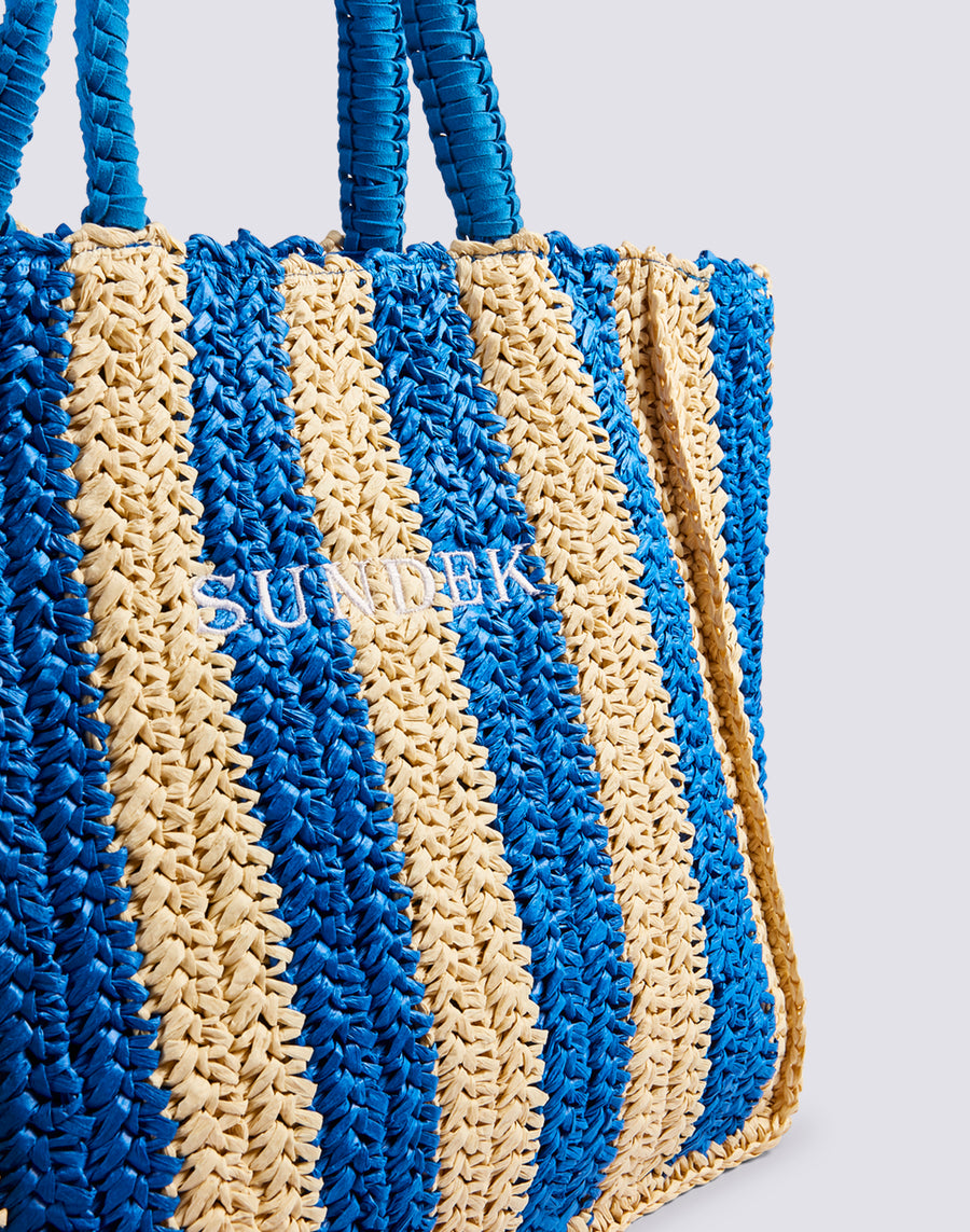 Striped Paper Straw bag with handles, zip closure and embroidered Sundek logo. Ideal for the beach, to bring with you everything you need for a day at the beach.