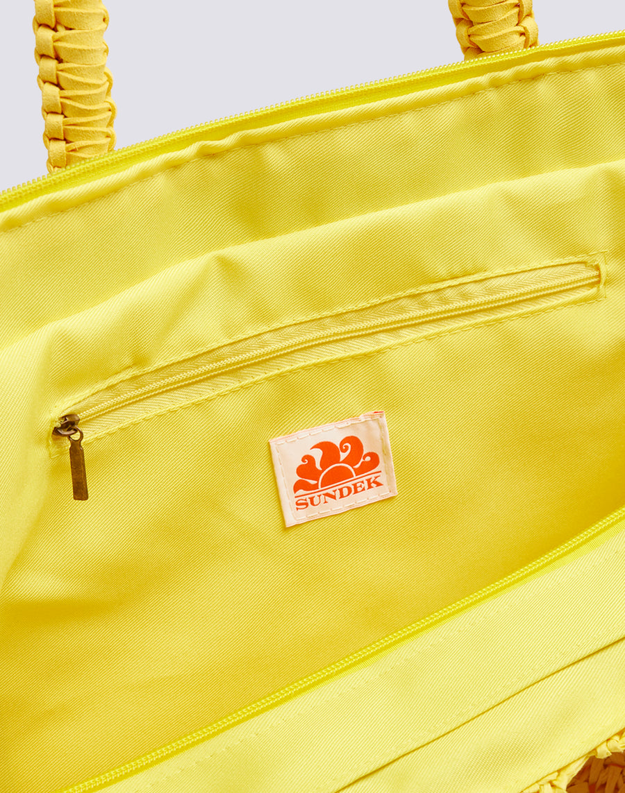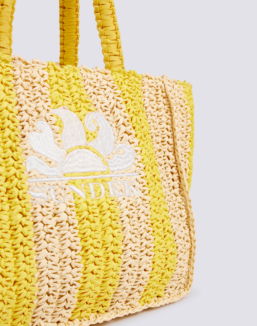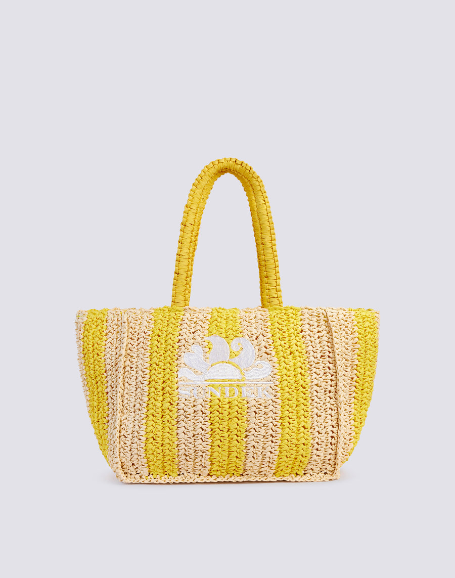Elegant woven straw bag with embroidered logo and zip closure. Equipped with an internal mini pocket, it is perfect for the beach or for a walk in the centre, to always have everything you need with you.