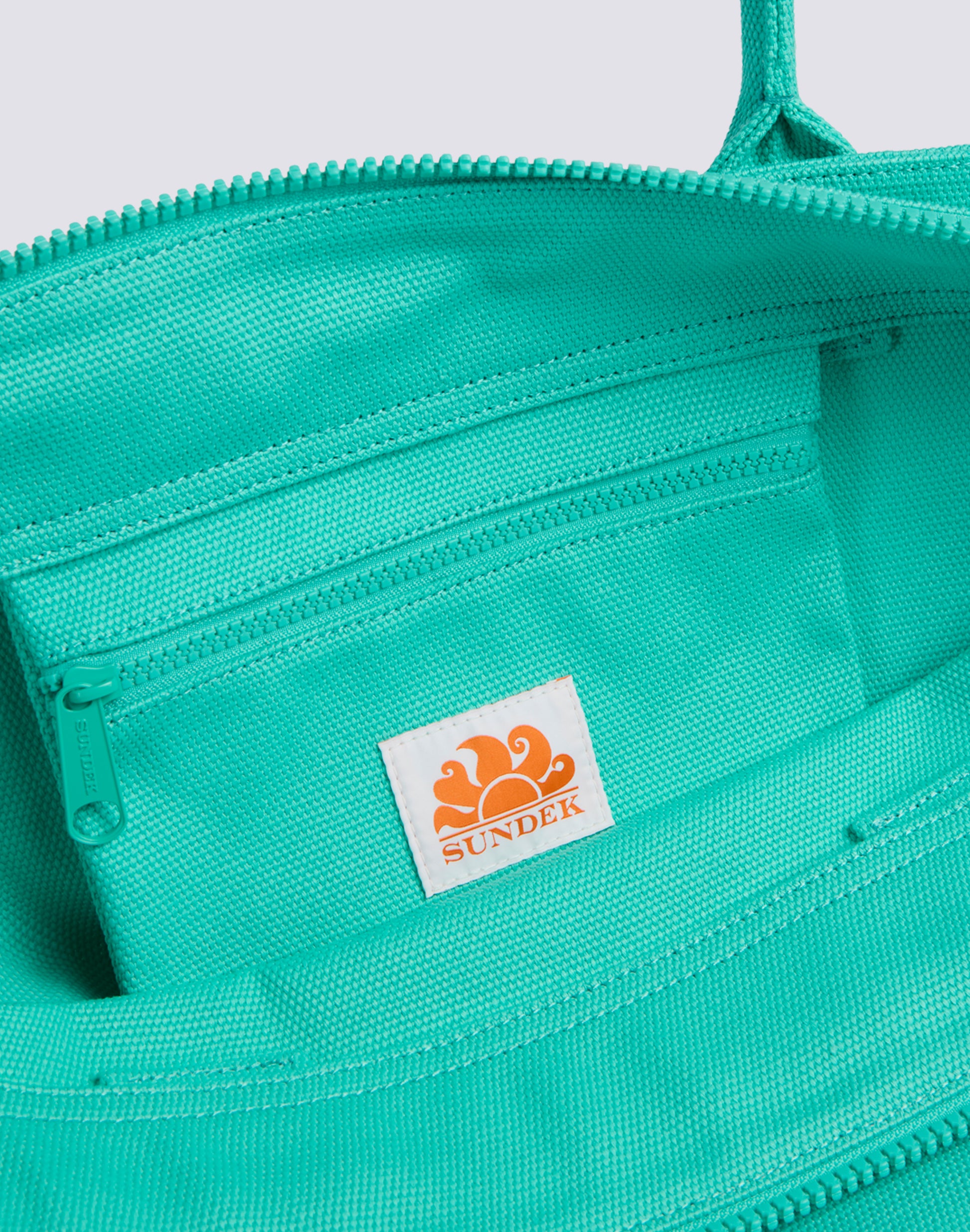 Contrasting Sundek logo and slogan printed on the front