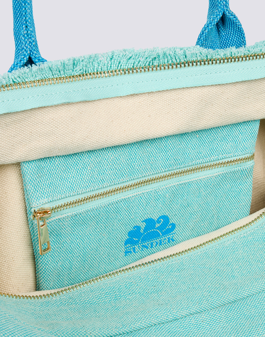 Regular-sized tote bag with a stone washed effect, central zip, large printed logo and gold trim. The fringe detail makes this model suitable for bold looks.