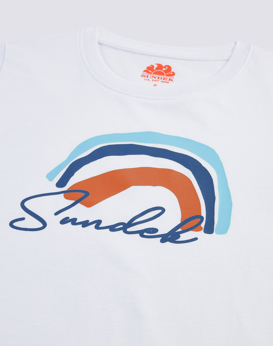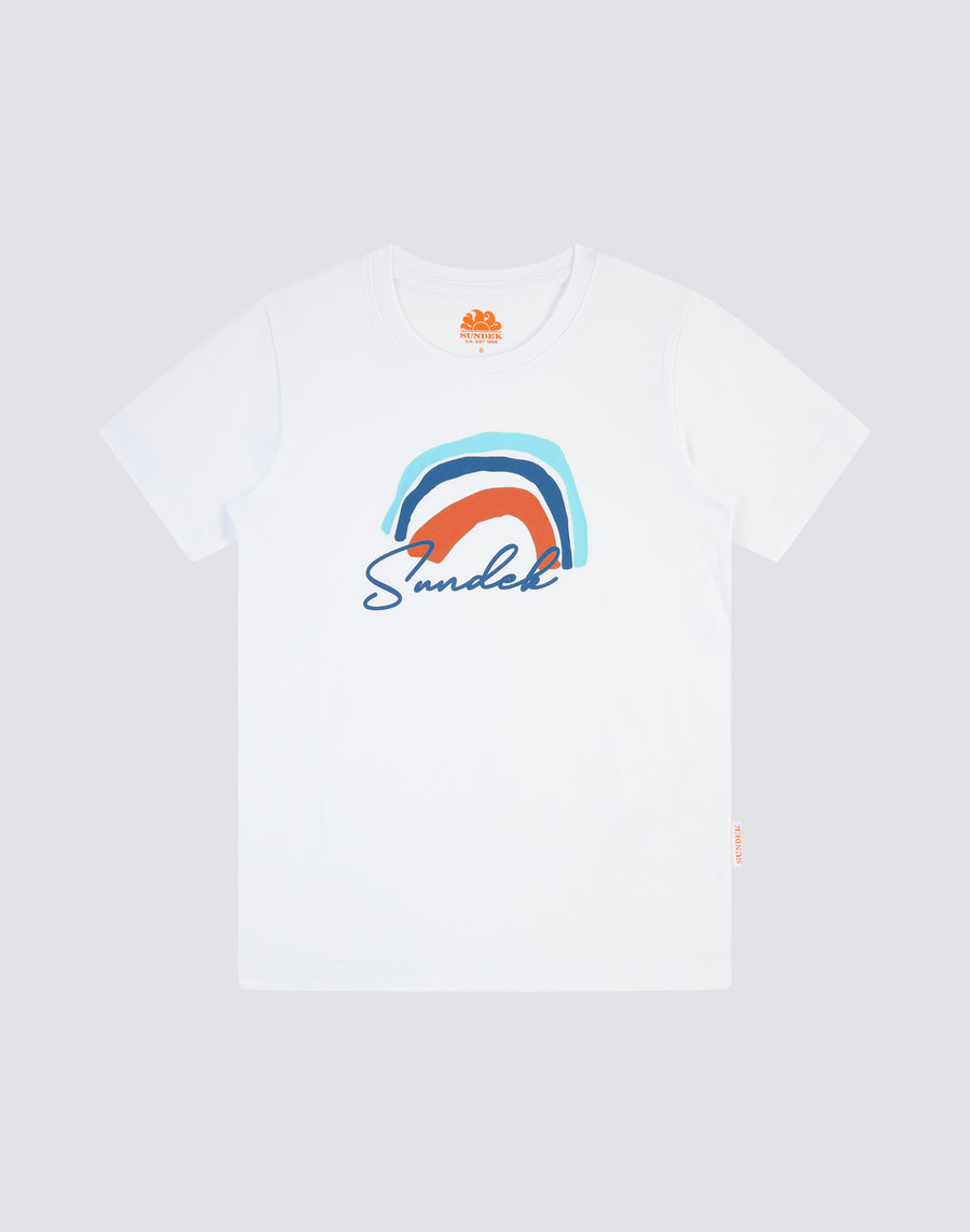 T-shirt with Kiddodle Rainbow front print. Crew neck collar and regular fit.