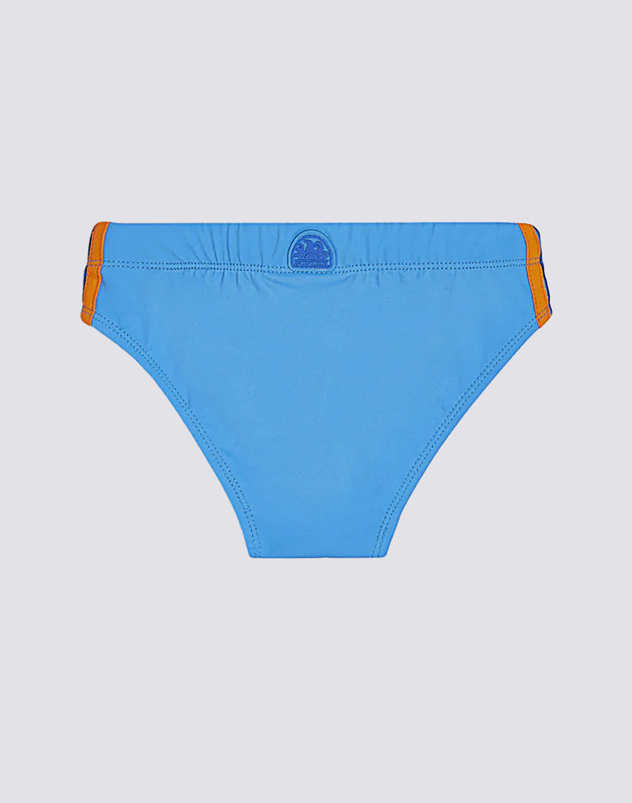 Immerse yourself in the colours of the rainbow. Child's swimming trunks in regenerated Econyl nylon.