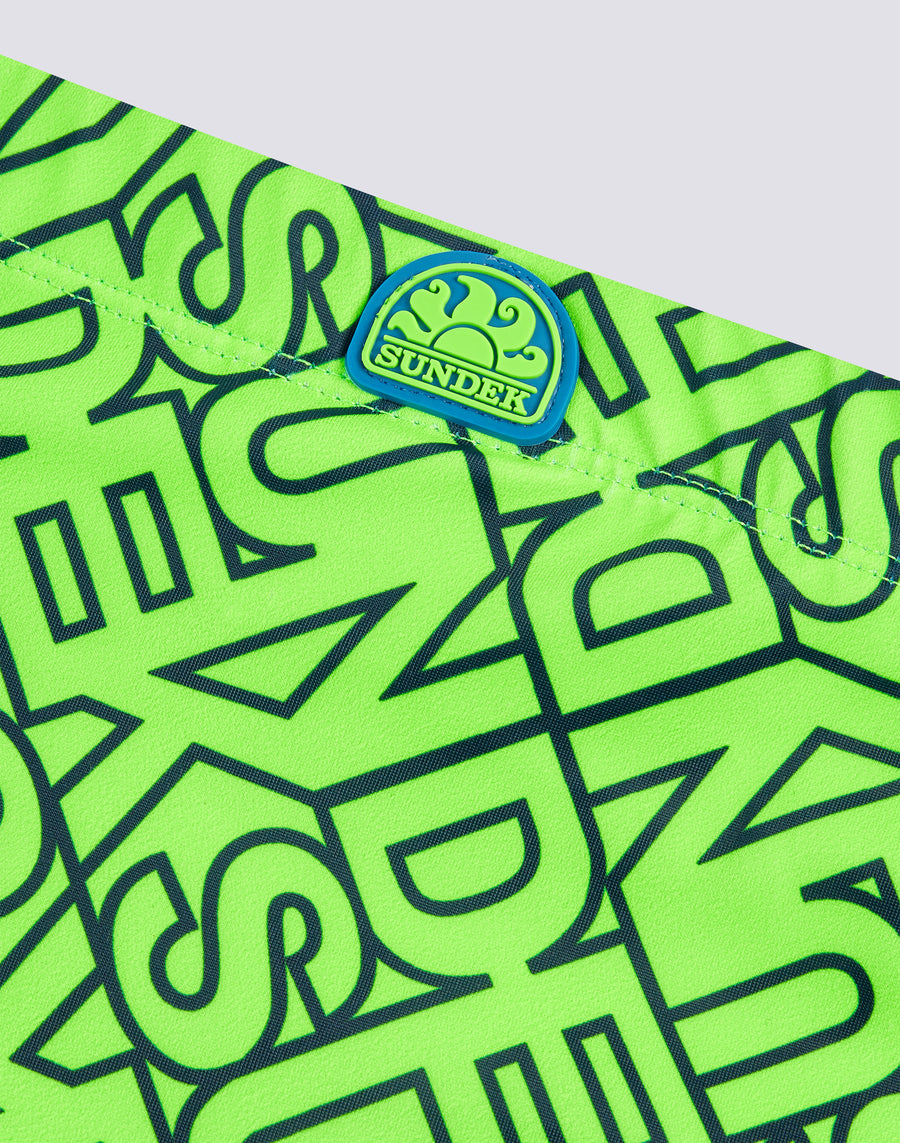 Immerse yourself in the colours of the rainbow. Child's swimming trunks in regenerated Econyl nylon.