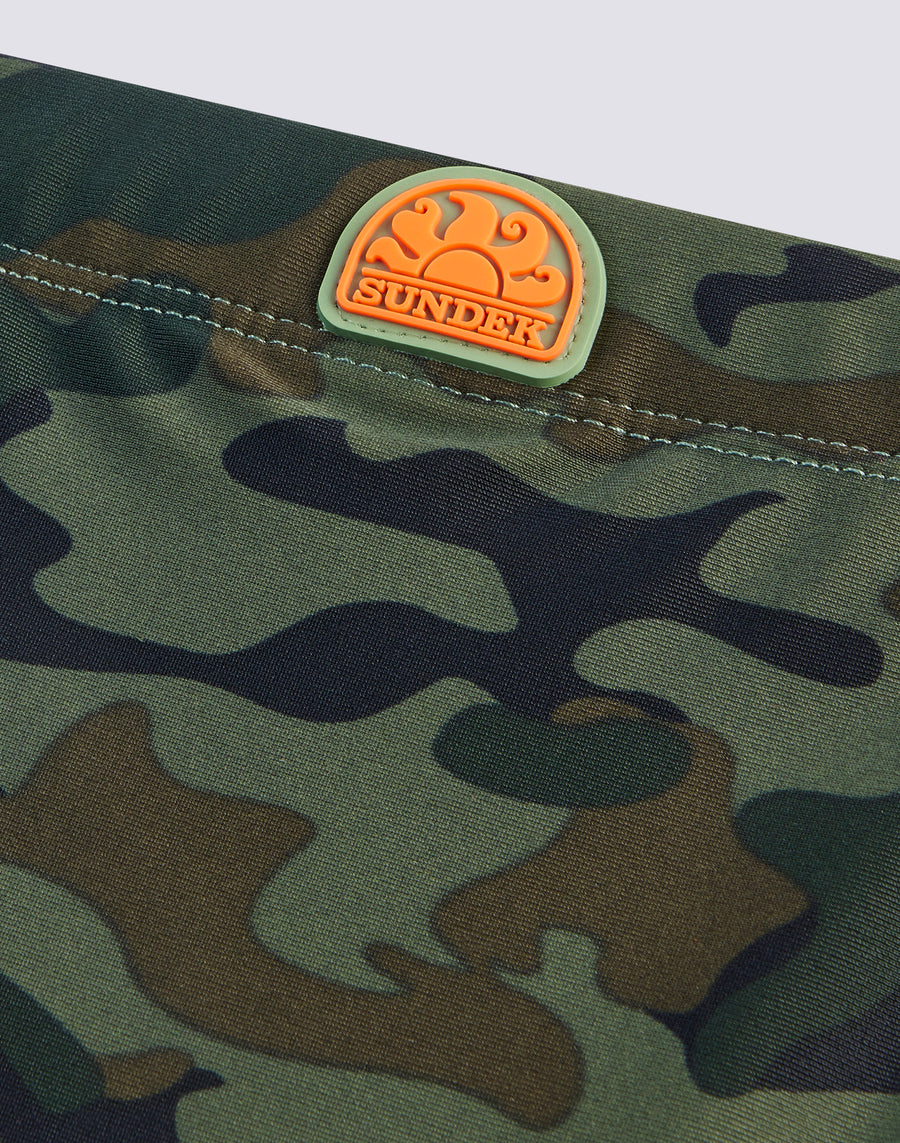 Immerse yourself in the colours of the rainbow. Boy's swimming trunks in camou print. Outseam length: 6 cm (size 6 years).